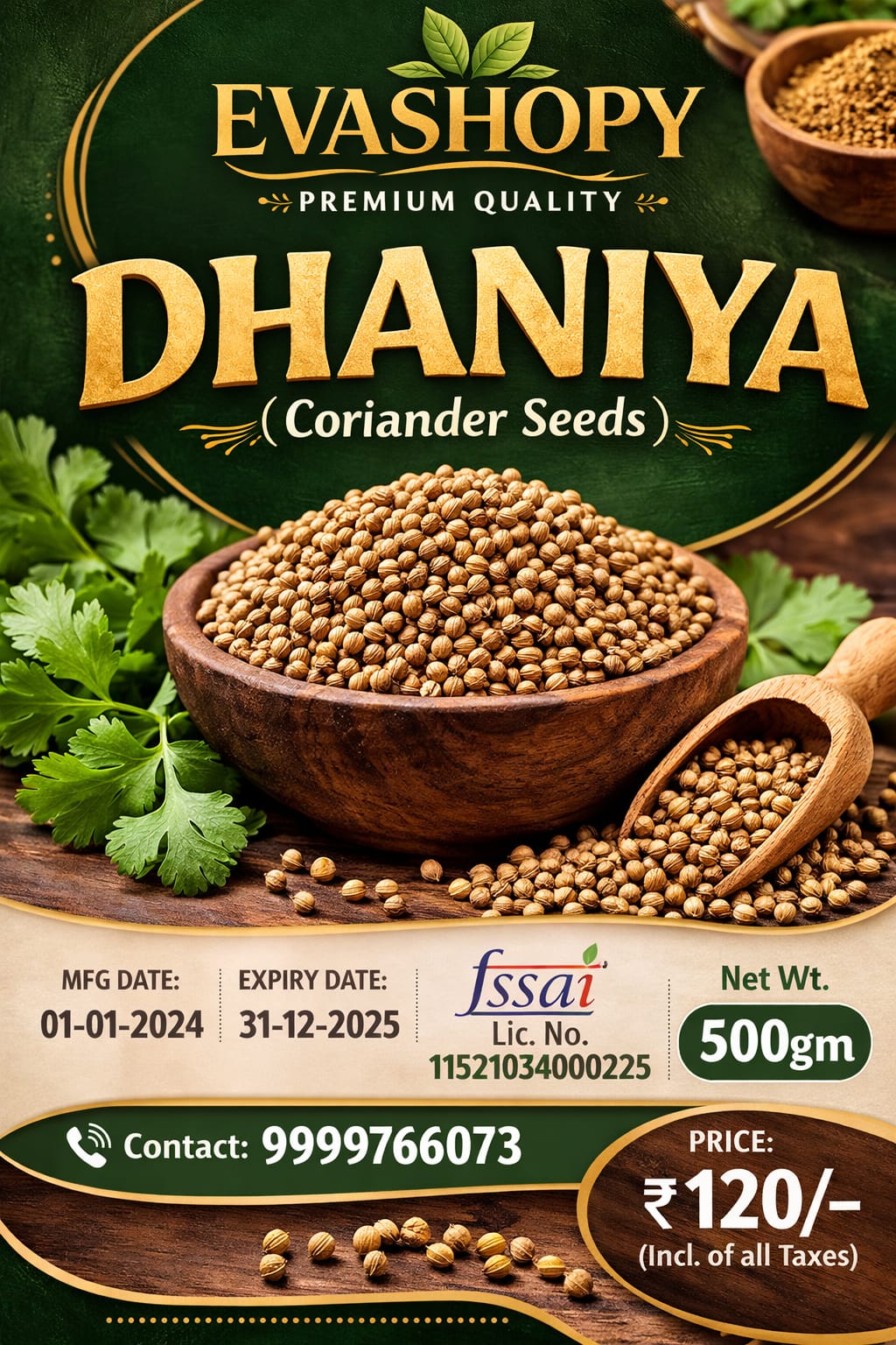 EVASHOPY Dhaniya (Coriander Seeds) – Premium Whole Spice (500g)