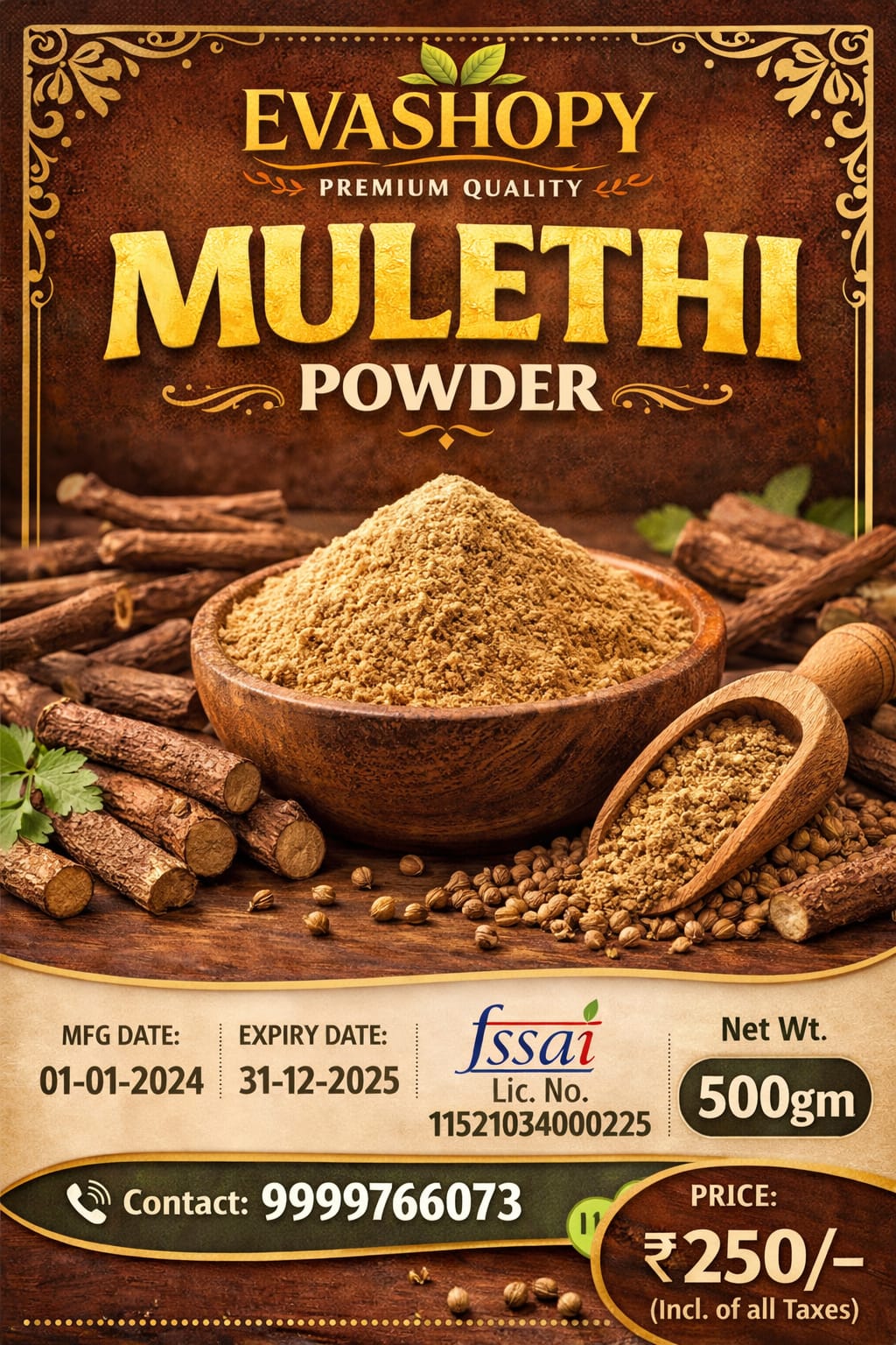 Whether you are preparing herbal drinks or traditional wellness recipes, Evashopy Mulethi Powder offers a natural and reliable choice for your daily routine.